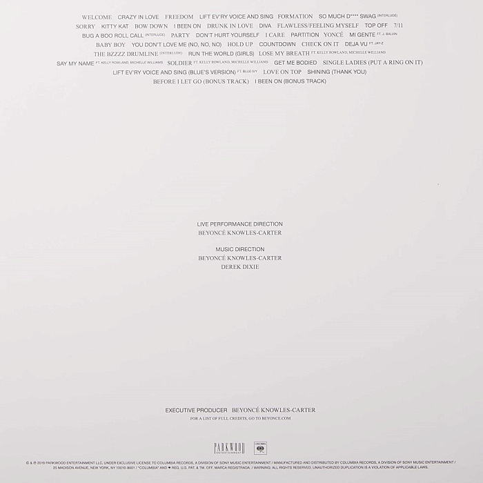 Limited edition four-disc vinyl set of Beyoncé’s Coachella performance over two weekends in April 2018.